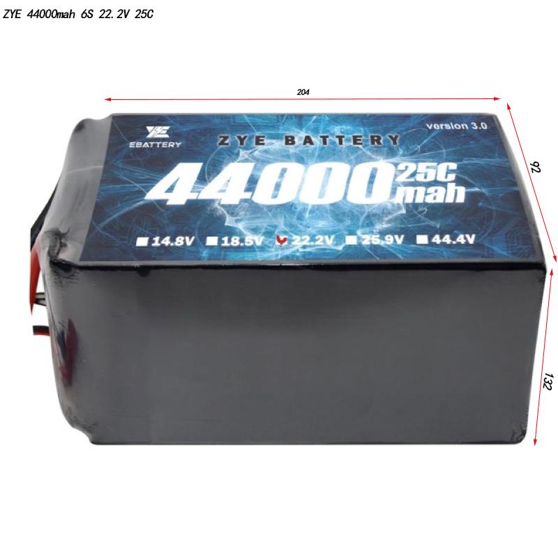 | 44000mah | 6S1P (22.2V) | 4990G (± 10G) | 204*92*132 mm | 976.8wh | 25c 1100a | 50c 2200A |